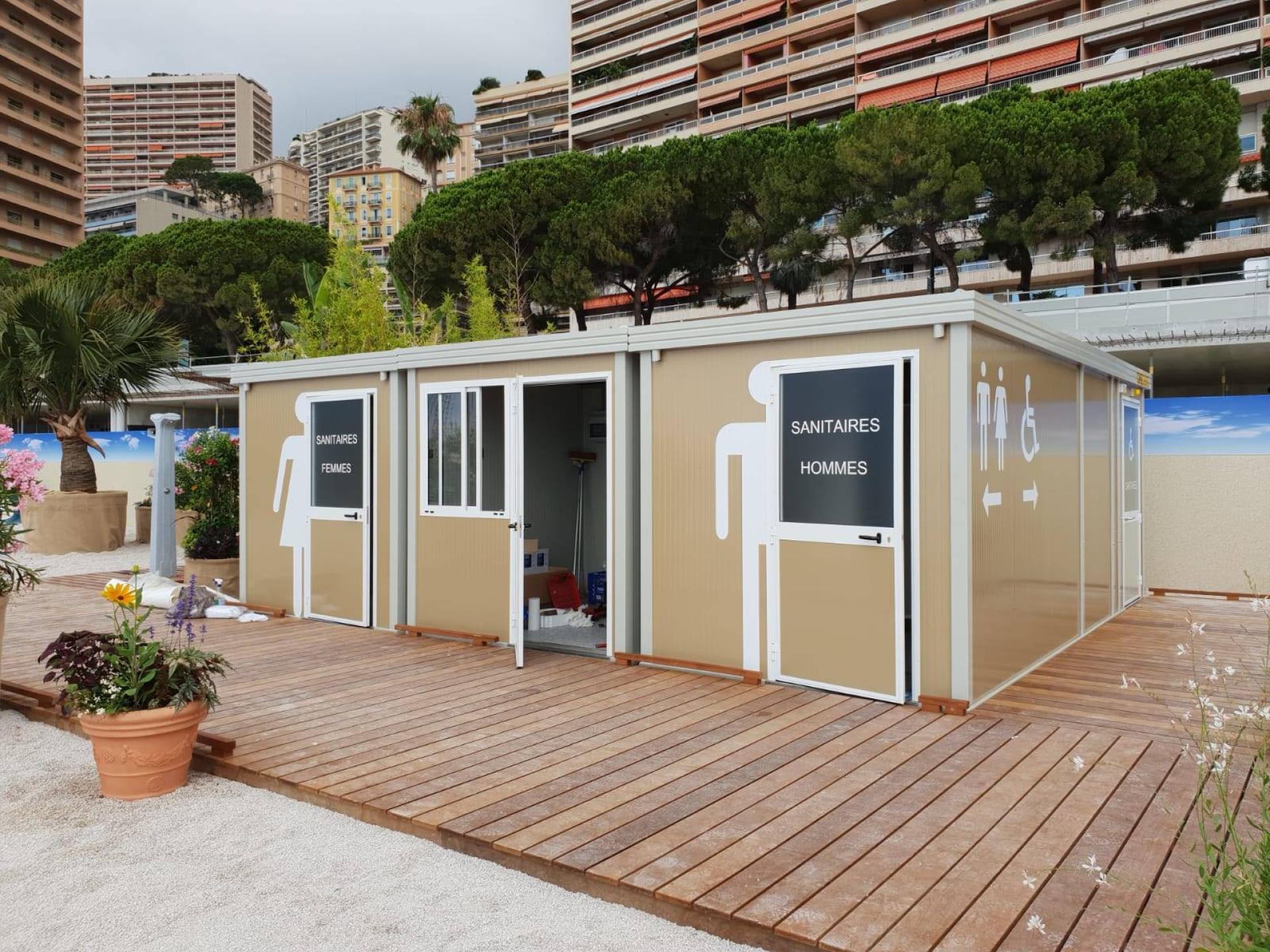 Durant la période estivale nous avons mis en place des sanitaires autonomes dédiés à l'évènementiels sur la plage du Lavrotto à Monaco. Ces wc évènementiel sont modulables est ont été loué pour le public cet été lorsque la plage était ouverte.